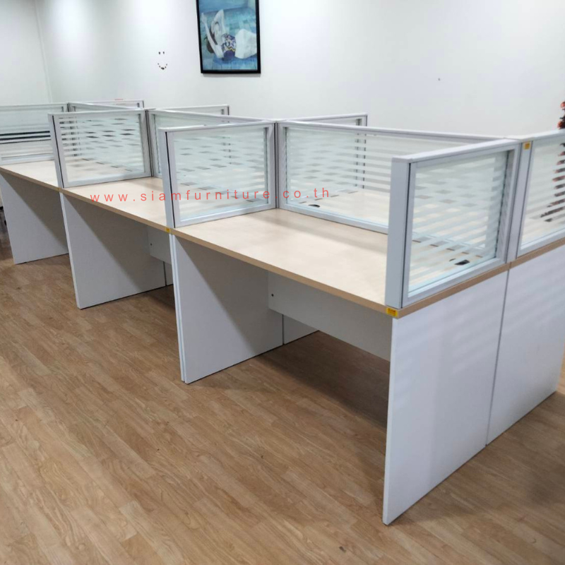 เซตโต๊ะทำงาน 6 ที่นั่ง มินิสกรีนกระจกขัดลายเต็มแผ่น