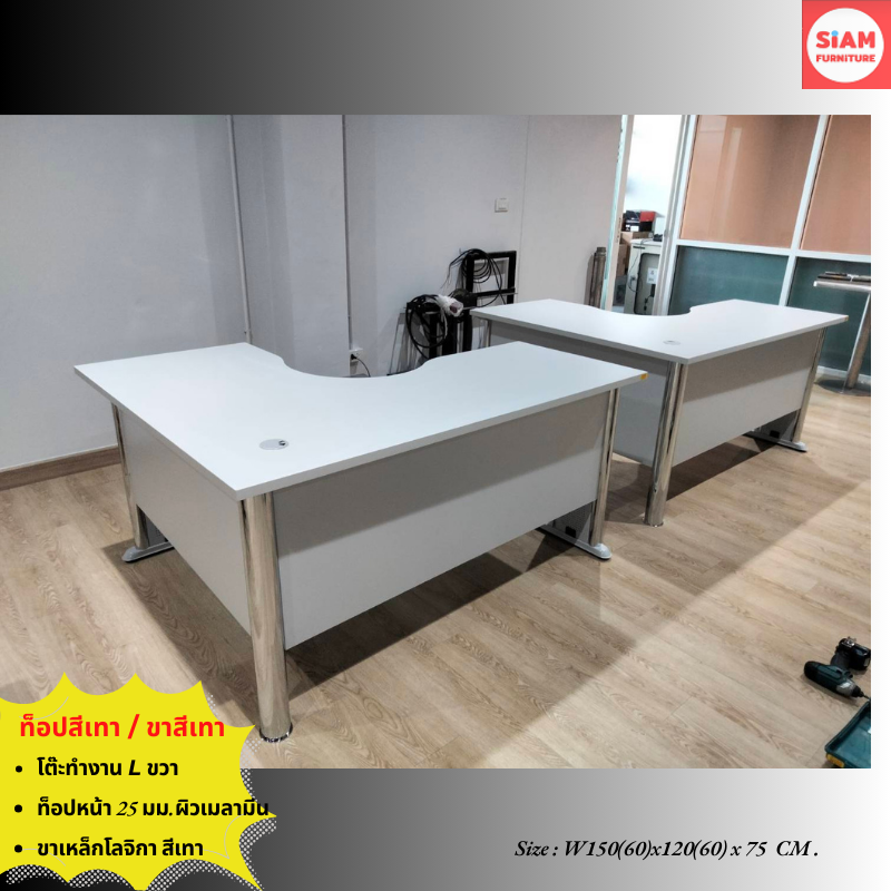 โต๊ะทำงาน L-Shape ขนาดW150(60) xD120(60)xH75 CM.